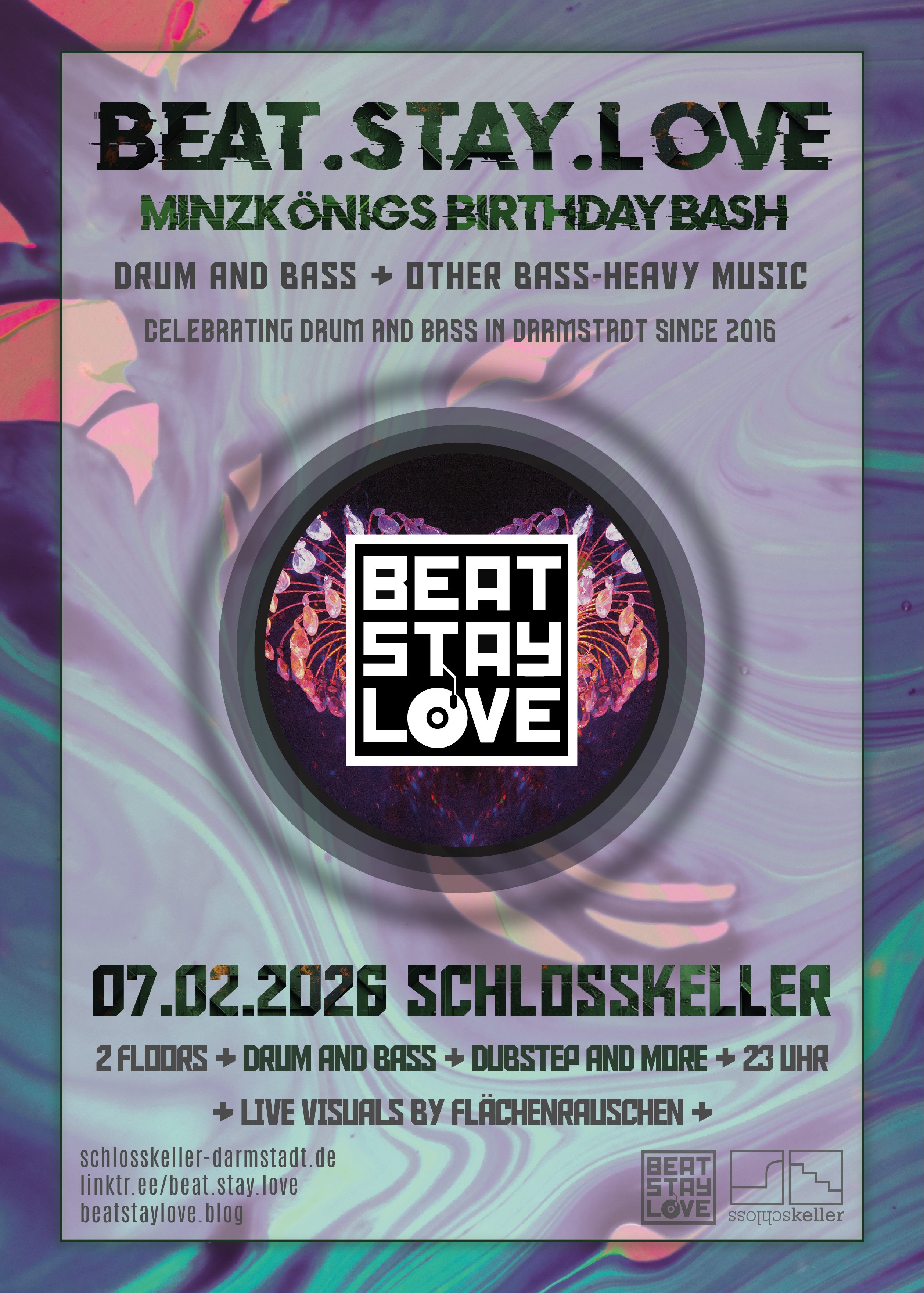 Die ersten Wochen im neuen Jahr sind vergangen, Silvester und Glühwein sind längst Geschichte und der Alltag droht wieder überhandzunehmen. Höchste Zeit, wieder richtig loszulegen und dem Trott zu entfliehen: Mit einer ordentlichen Ladung basslastiger Musik im Gepäck startet Beat.Stay.Love am 7. Februar mit dem ersten Event im Schlosskeller in das neue Jahr.