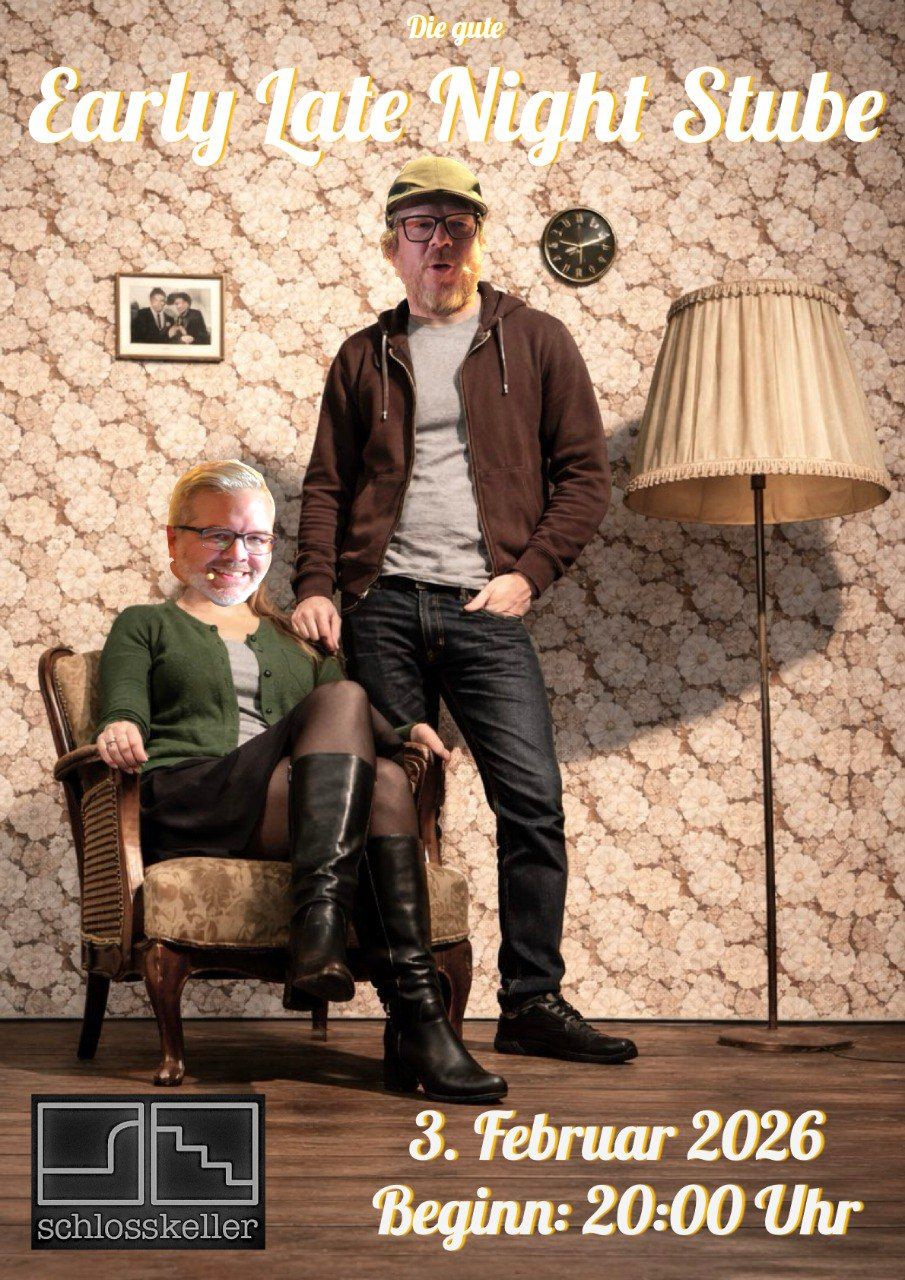 Am 3. Februar wird der Schlosskeller Darmstadt wieder zur Bühne für die Early Late Night Show! Wie es sich für die wahrscheinlichen Preisträger:innen des Heinz Schenk Gedächtnispreises 2026 gehört, bekommen wir hochkarätigen Besuch aus der Darmstädter Kulturszene: Zu Gast sind Alexandra Welsch und Torsten Jahr von der Guten Stube.